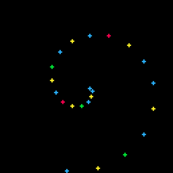 I'm a sucker for harmonic motion animations, and the arrangement of colors adds a neat secondary layer of cycles.